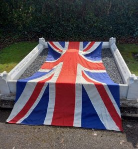 Work to restore included ensuring that the remaining lead lettering was firmly embedded into the stone work before the steam clean commenced. The results of this are clear to see and with a refresh of gravel the grave is restored to a standard befitting of Walter Parker VCs status. As an extra mark of respect the Union Jack is placed over the memorial and a few words of remembrance spoken by observers and local veterans.